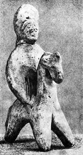 В персидское время большой популярностью пользовались терракотовые фигурки, изображавшие всадников. IV в. до н. э. Высота 13,9 см