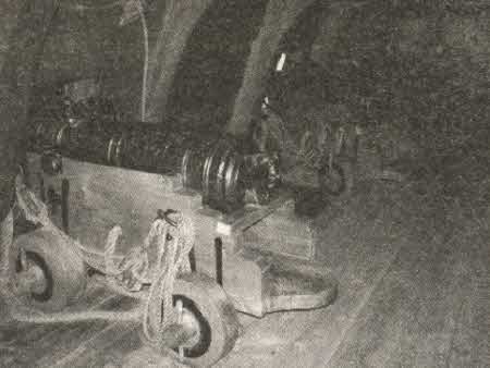 «…Это были костюмы из кожи… Люди входили в кожаный колокол четырех футов и двух дюймов высотой. Человек имел крюк длиной в шесть футов и им орудовал. Водолаз мог находиться под водой 15 минут…»