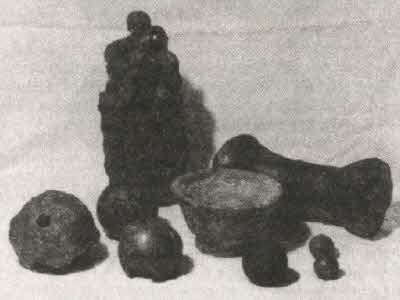 В северной части острова нам удалось обследовать старый поселок — остатки более десяти строений, христианское кладбище со скромными железными крестами, почти полностью занесенными песком, и колодец, который упоминается в литературе в начале XIX века. А вокруг вперемешку множество современных железных деталей, битого кирпича и фрагменты поливной керамики, изящной фарфоровой и стеклянной посуды. Рядом чубук курительной трубки XVIII века и десяток кремневых орудий труда.