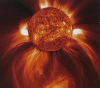 В своей сердцевине Солнце преобразует водород в гелий. Температура там достигает 15 миллионов градусов Цельсия. На поверхности Солнца, удаленной от его центра на 700000 км, температура составляет 5500?С.