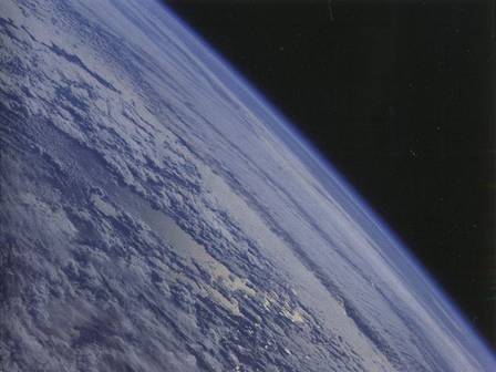 Кроме магнитного щита, Землю защищает только атмосфера. На этом снимке, сделанном из космоса, хорошо видно, как невелик атмосферный слой — тоненький синий поясок, отделяющий Землю от космоса.