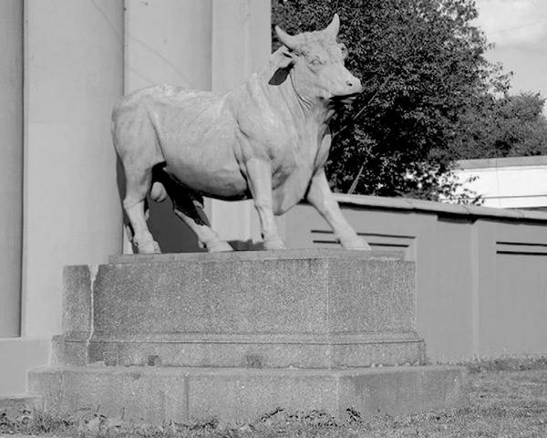 У ворот предприятия установлены бронзовые фигуры быков работы В.И. Демут-Малиновского, перенесенные от старого Скотопригонного дома.