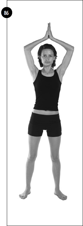Поднимите руки вверх над головой, согните в локтях и соедините ладони, как это показано на рисунке 86. Начинайте давить на ладони достаточно сильно.
