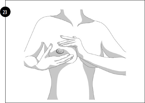 Одна рука поддерживает молочную железу снизу, а другая рука выполняет поперечное разминание, как это показано на фотографиях 23 и 24. Старайтесь осторожно размять всю поверхность молочной железы, но не растягивайте ее грубо в разных направлениях.