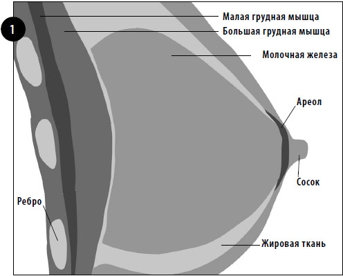 Женская грудь состоит из большой и малой грудных мышц, жировой ткани, молочных желез и молочных протоков, соединительной ткани сети кровеносных и лимфатических сосудов кожи.