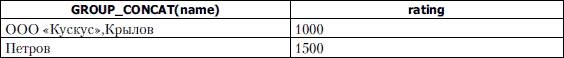 Этот запрос группирует клиентов по значению рейтинга и выводит имена клиентов в каждой группе (табл. 3.39). Таблица 3.39. Результат выполнения запроса