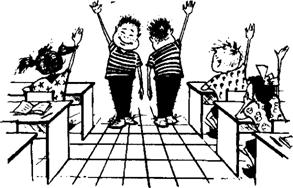 11. Знакомство со схемой тела стоящего напротив, а) Вызванный ученик, стоя спиной к классу, поднимает правую руку. Остальные, сидя на своих местах, поднимают свою правую руку и убеждаются в том, что вызванный ученик правильно выполнил инструкцию.