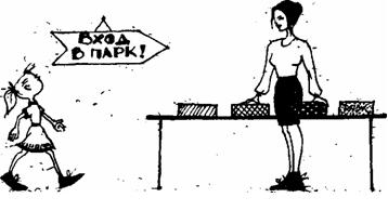 Условия игры. Дети сидят за партами. Логопед раздает им по 4–6 цветных брусков (из детского набора «Строитель»). Слева от детей условно обозначен вход в парк (см. рис. 9).