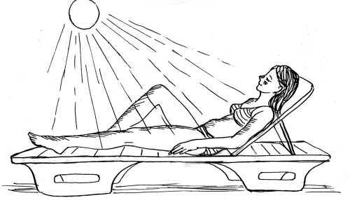 Во-вторых, правильно дозируй время облучения, чтобы не вызвать ожога. Начинай постепенно, примерно с 10–15 минут для прямых лучей и до получаса при загаре в тени. Затем длительность «сеансов» постепенно увеличивают, на пять-семь минут в день, доводя до нескольких часов. Помни, наиболее полезно загорать ранним утром, с 8 до 10, и вечером, с 17 до 19. Для большей безопасности можно начать прием солнечных ванн загодя, с середины весны, когда солнце еще не такое «жгучее».
