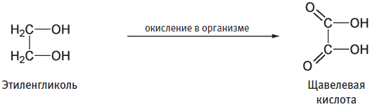 Интересно, что ядовит не сам этиленгликоль, а то вещество, в которое он превращается в организме. Окисление этиленгликоля под действием ферментов организма приводит к образованию щавелевой кислоты.