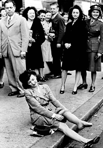 После Второй мировой войны, когда из нейлона вновь стали производить трикотажные изделия, женщины бросились покупать любимые чулки