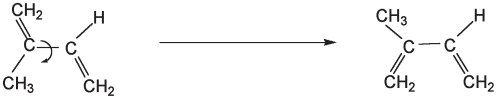 Здесь у каждого из двух соседних атомов углерода имеется двойная связь, а вокруг одинарной связи, соединяющей центральные атомы углерода, возможно свободное вращение.