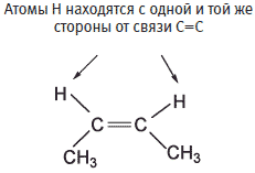 Атомы углерода, продолжающие полимерную цепь, располагаются с одной и той же стороны от двойной связи, следовательно, это цис-изомер