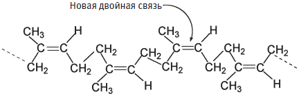 На рисунке внизу изображены четыре молекулы изопрена, готовые вступить в реакцию с образованием молекулы природной резины: