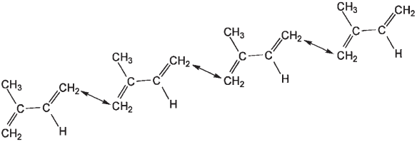 На следующей странице пунктирными линиями обозначено продолжение полимерной цепи, которое может происходить в случае присоединения новых молекул изопрена.