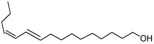 Кроме того, в таком виде проще сравнить эти молекулы с молекулами, которые синтезируют другие насекомые. Например, бомбикол — это феромон, или половой аттрактант, который синтезируют самцы тутового шелкопряда. В отличие от молекулы, синтезируемой пчелиной маткой (которая также является феромоном), эта молекула состоит из шестнадцати атомов углерода, имеет две двойные связи вместо одной и не содержит группы COOH.