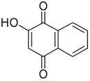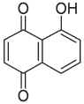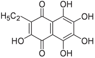 Молекула нафтохинона бесцветна, однако его производные окрашены: джуглон определяет цвет грецкого ореха, а лавсон является красящим веществом хны. Окрашенные производные нафтохинона могут иметь множество OH-групп, как, например, изображенная ниже молекула эхинохрома — красного пигмента, обнаруженного в тканях некоторых видов морских ежей.