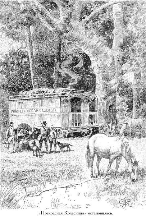 К счастью, благодаря непрерывным окрикам сборы вскоре закончились и упряжка заняла положенное место между оглоблями. В четыре часа утра собаки, обезьяна, попугай, муж, сыновья и дочь были водворены в отсеки «Прекрасной Колесницы», на передок которой водрузилась Корнелия. Затем, как только Клу и проводник взяли лошадей под уздцы, отдала приказ трогаться.