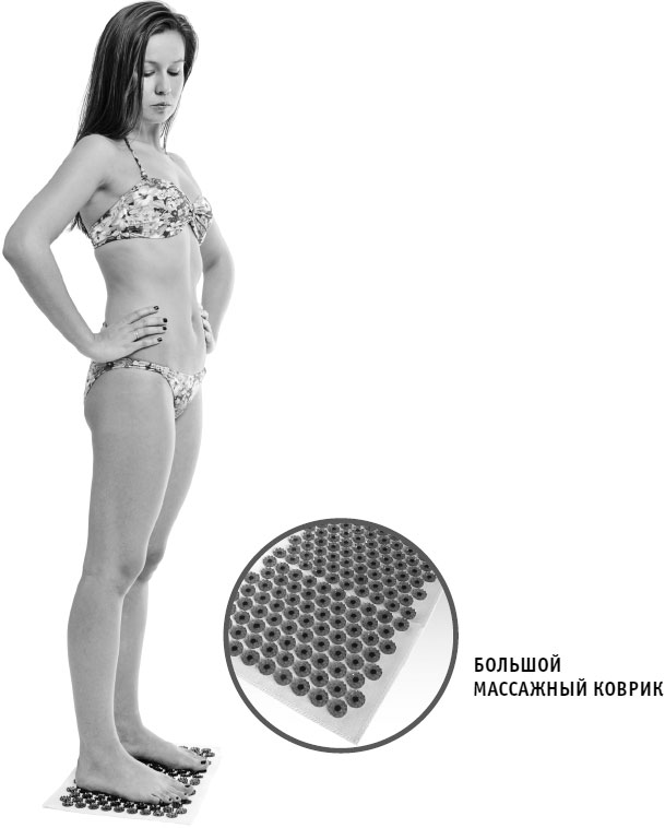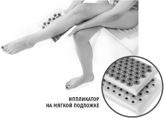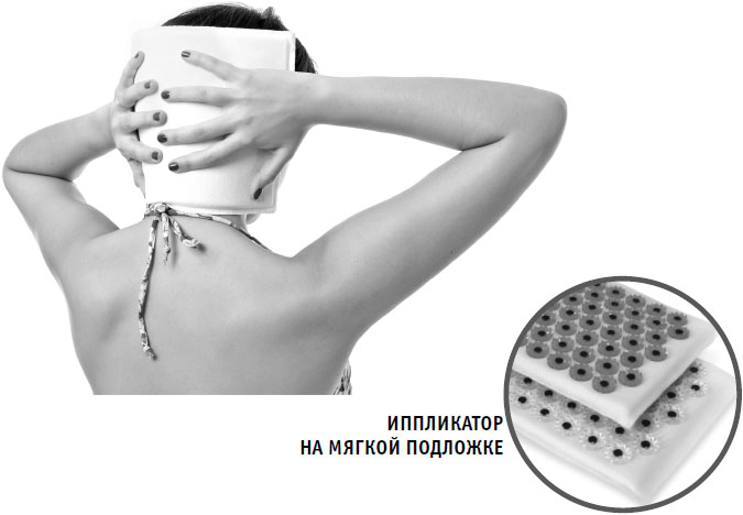 игольчатый массаж проводим в два этапа. Сначала воздействуем на ступни, стоя на иппликаторном коврике. Затем иппликатором на мягкой подложке массируем голову, особое внимание уделяя основанию черепа. Для метеопрофилактики желательно использовать иппликаторы с магнитными вставками.