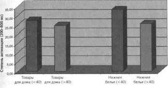 В силу того, что товары такой ассортиментной группы, как, например, нижнее белье, обладают более высокой степенью эмоциональной привлекательности, чем товары для дома, женское белье при визуальном восприятии вызывает более высокую нейромагнитную активность, причем не только у мужчин, но и у женщин. Чем сильнее какое-либо понятие (а вместе с ним и продукт) закреплено в памяти на нейронном уровне, тем выше потенциал его активации в сознании.