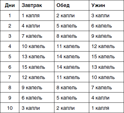Далее по 25 капель три раза в день, пока не кончится лекарство. Курс лечения можно повторить не ранее чем через пять лет.