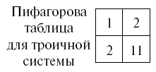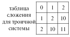 Чем меньше основание системы, тем меньше и соответствующие таблицы сложения и умножения. Например, для троичной системы обе таблицы таковы: