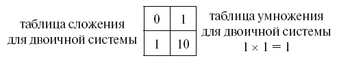 Их можно было бы сразу же запомнить и пользоваться ими для выполнения действий. Самые маленькие таблицы сложения и вычитания получаются для двоичной системы: