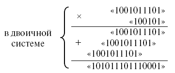 Выполнение действия сводится только к переписыванию данных чисел в надлежащем расположении: это требует несравненно меньше умственных усилий, чем умножение тех же чисел в десятичной системе (605 × 37 = 22385). Если бы у нас была принята двоичная система, изучение письменного счисления требовало бы наименьшего умственного напряжения (зато – больше бумаги и чернил). Но в устном счете двоичная арифметика по удобству выполнения действий значительно уступает нашей десятичной.