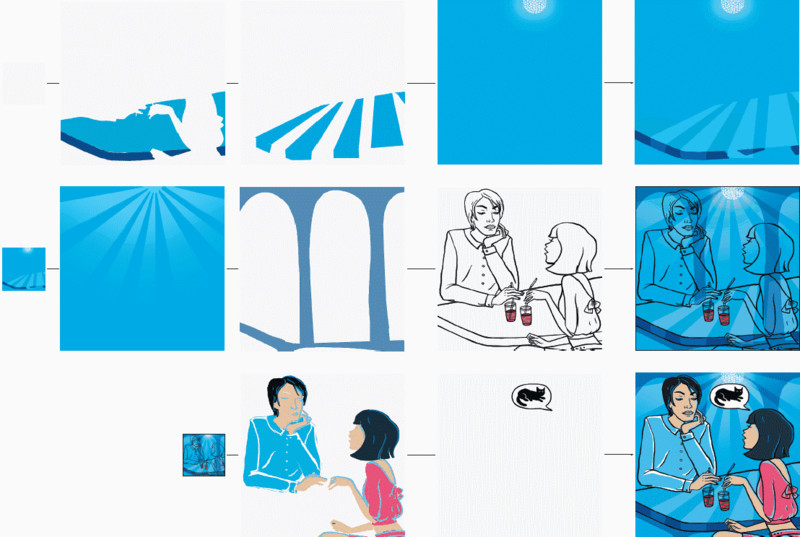 Разные слои иллюстрации нарисованы отдельно. Некоторые наложены друг на друга методом «умножить». Любой слой легко перекрасить или удалить по желанию заказчика, не затрагивая другие элементы