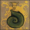 На отдельных слоях на рисунок наложены цветные пятна. Так они выглядят в обычном режиме с плотностью 100 %. На первом слое — зеленая раскраска для раковины, на втором — желтый блик, на третьем — белые блики для глаз и головы