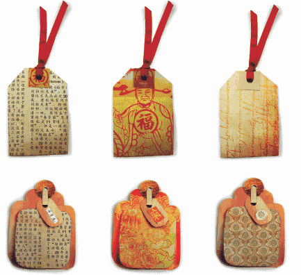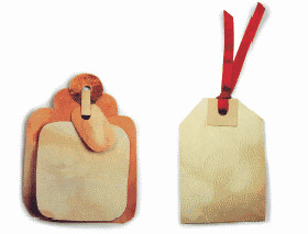Состаренная бумажка была нарезана на ярлыки разной формы