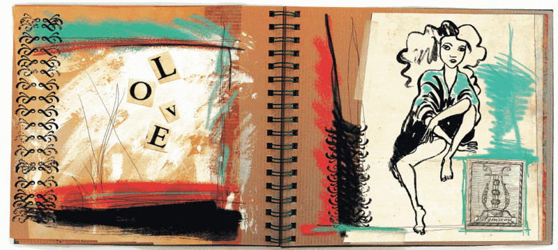 Для создания подобной иллюстрации не обязательно делать целую книгу. Достаточно приобрести один особенно колоритный альбом, сфотографировать его в раскрытом виде и украсить в «Фотошопе»: