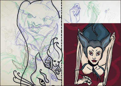 Разумеется, заказчикам следует показывать более чистые и понятные разработки, но часто клиенты требуют показать эскиз, прежде чем будет нарисован чистовик. Поэтому нужно учиться создавать простые образцы, понятно отображающие будущий сюжет картинки. Здесь и оправдывает себя наличие ярко выраженного собственного стиля. Если по портфолио иллюстратора легко представить, как будет выглядеть готовая работа, клиенту будет достаточно увидеть приблизительный набросок, чтобы принять его. Чем больше он верит в силы иллюстратора, тем меньше придирается к деталям и неточностям в рисунке. Например, он не попросит переделать эскиз с криво нарисованной рукой, если знает, что в работах этого автора руки всегда нарисованы безупречно.