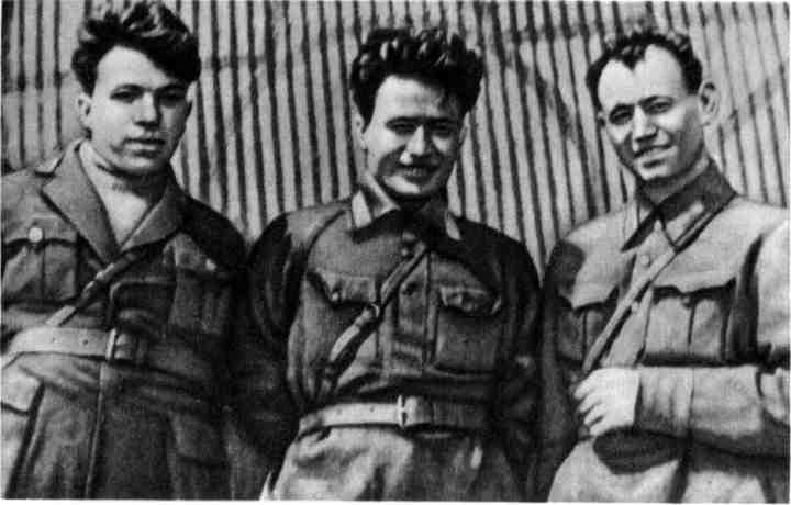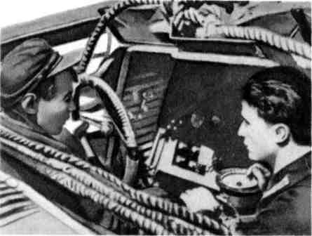«Мой экипаж. Справа штурман М. П. Шелыганов, слева К. С. Анисимов»