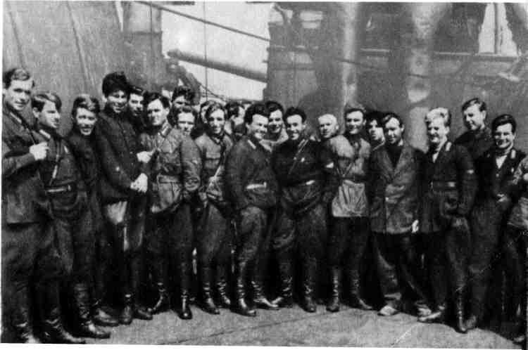 Личный состав авиаотряда Н. П. Каманина на пароходе «Смоленск» в пути к лагерю челюскинцев