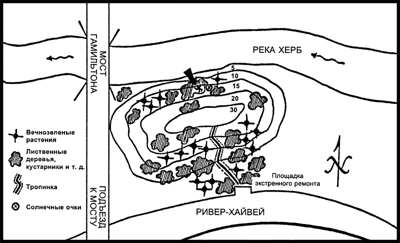 Девушку нашли у подножия пятнадцатифутового обрыва, на одном из ровных уступов, которыми утес спускался к реке. От площадки экстренного ремонта через вечнозеленый кустарник и мимо кленов к высшей точке утеса, возвышающейся футов на тридцать над рекой Херб, вела тропинка.
