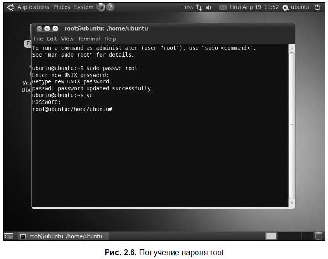Однако нам так до сих пор и не известен пароль root. Выходит, мы установили Ubuntu на свой компьютер, и в нем, вроде как, главные, но не знаем самого главного пароля? Непорядок! Поэтому предлагаю ввести следующую команду: