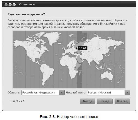 После выбора языка укажите, где вы находитесь, и выберите часовой пояс (рис. 2.8).