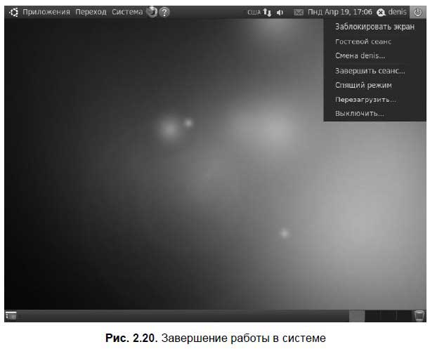 Для завершения работы нужно нажать кнопку в верхнем правом углу экрана и выбрать одно из действий (рис. 2.20):