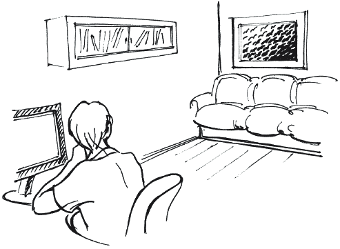 Возьмите за непреложное правило: при чтении и работе за компьютером не смотрите неотрывно и подолгу на испещренную буквами страницу, находящуюся от вас на одном и том же расстоянии, а хотя бы на несколько секунд прервите работу и посмотрите вокруг и вдаль. Как минимум один раз в течение академического часа необходимо отрывать глаза от книги. У школьников и студентов такая возможность предусмотрена – между уроками и лекциями имеются перемены. А взрослый человек должен предоставить ее себе сам. Повесьте в дальнем от рабочего стола конце комнаты картину или фотографию, которую было бы интересно рассматривать (рис. 23). Лучше, если она будет многоцветной и яркой.