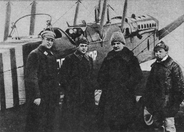 И. Э. Якир (второй слева) и В. Я. Чубарь (второй справа) на Харьковском аэродроме