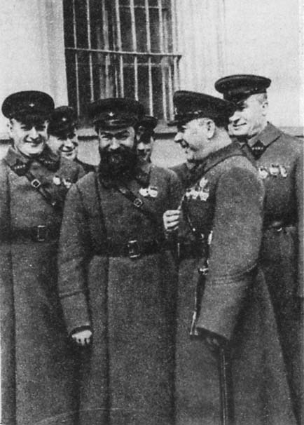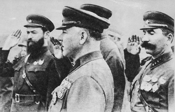 К. Е. Ворошилов, С. М. Буденный и Е. А. Щаденко (слева направо)