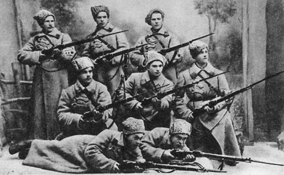 Члены партийной комиссии 2-й Червонно-Казачьей дивизии. Симкин, Аремаев, Васильев, Подзюмский (слева направо)