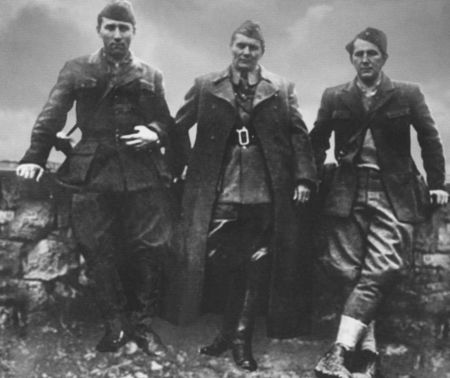 Тито (в центре) с Александром Ранковичем (слева) и Милованом Джиласом. 1943 г.