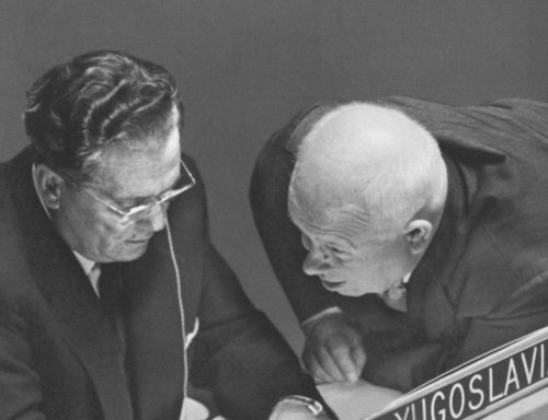 Тито и Хрущев на знаменитой сессии ООН, когда советский руководитель стучал по трибуне башмаком