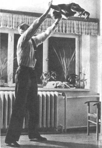 Им знакомо множество чудесных игр. Томас хватает вас за руки, желая, чтобы его покачали. Если же мы отказываемся, то, раздосадованный, он пытается укусить. Но кусается он несильно, если же уж очень разозлится, то норовит схватить за ногу. В разгаре игры он, озорничая, начинает бить обеими ладонями по вашему лицу. Иногда все трое в упоении и блаженстве выстраиваются в ряд, дубася себя кулаками в грудь, а зачастую колотят и по стене, лишь бы только гремело посильнее! Правда, у маленького Карло эти знаменитые горилльи жесты долго не получались, и лишь через несколько месяцев он, прислонившись спиной к стенке, попытался воспроизвести их, но и тут потерпел неудачу и лишь хлопал себя по брюху ладонями. Стоило же ему протянуть руку к груди, как он шлепался на пол.