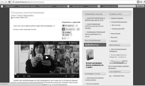 Но самая главная вещь, которая для нас принципиальна, – человек написал комментарий, и этот же самый комментарий отобразился на его страничке, на его стене в социальной сети. Если кто-то пишет, например: «Думаю, это будет работать», – что происходит? Его друзья, знакомые увидят это событие в своих новостных лентах и, возможно, заинтересуются. Всего один клик мышью – и на вашем сайте новые посетители!