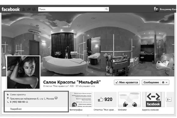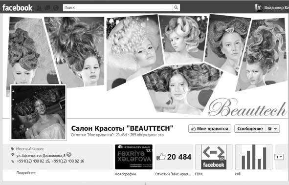 Вкладки представляют собой фотографии, кнопки «Мне нравится», страницу «Welcome». На этой странице есть привлекательная флэш-вкладка, которая презентует услуги, мастеров и контактную информацию, а также краткий прейскурант. Не уходя с Facebook, посетитель может получить всю информацию о салоне и его услугах.