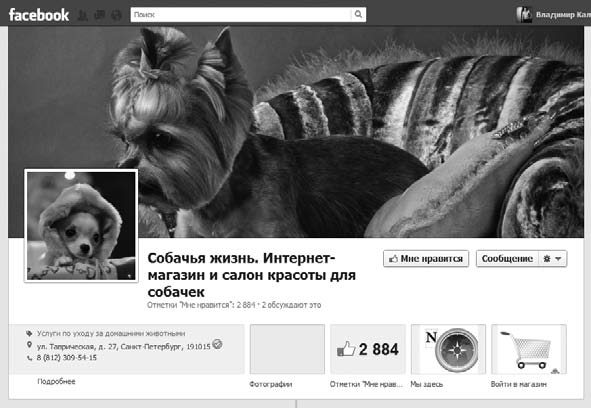 Страница содержит адрес, номер телефона, фотографии, кнопку «Мне нравится». Кроме того, посетители найдут здесь сведения о домашних питомцах, уходе за ними, о породах и их особенностях, о питании и т. п.