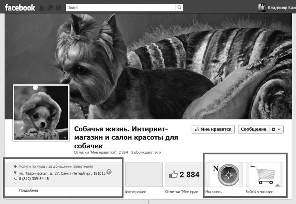 Есть вкладка, указывающая, где можно найти данный интернет-магазин, а также вкладка «Войти в магазин». На этой бизнес-странице можно увидеть перечень товаров и сразу же приобрести их непосредственно на сайте Facebook.